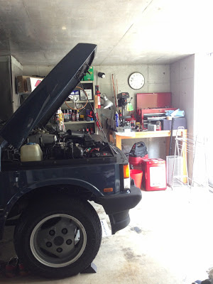 日曜は梅雨の合間に気持ちよく晴れた。でも格納庫では久々のクラシックレンジローバーいじり。今日も、好きでやってンじゃないよ、的な作業。