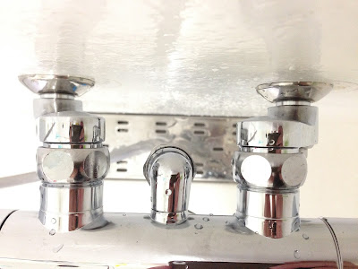 さっき最初に俺が使ってみた使用感。この大きな切替ハンドルの上げ下げでシャワーとスパウトの切り替えが目を瞑っていてもできるし軽いし、流量も調整できるのでVery Goodな製品だ。しかし、マッサージ水流付きのシャワーヘッドは老人には重すぎる…。シャワーヘッドだけ元のに戻そう…。